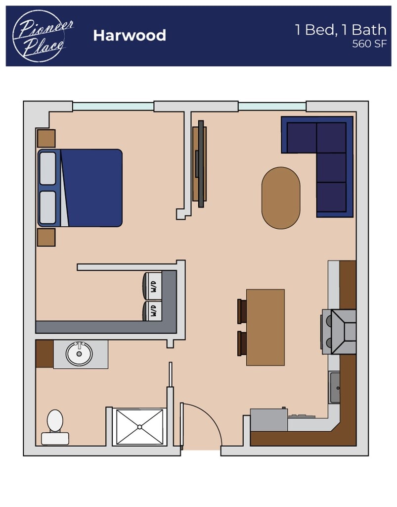 Apartment Model: Harwood$1,0251 Bedroom, 1 Bath, 560 sq ftAvailable Now![]()
