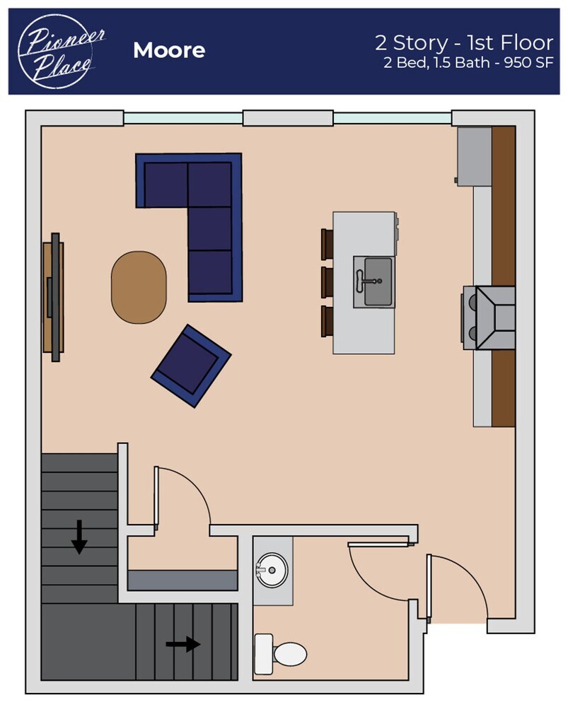 Live at Pioneer Place offers 1 to 2 Bedroom apartments starting from $1,025 and having 560–1,185 sq ft. Here is the current pricing and availability: