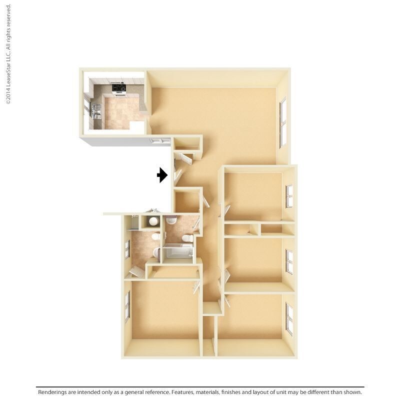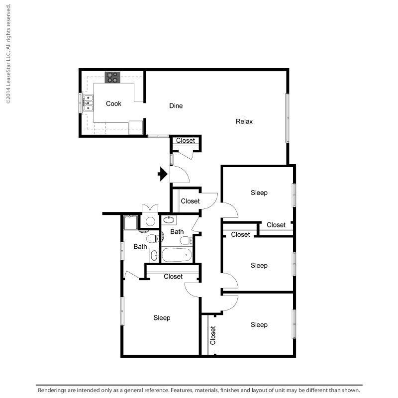Apartment Model: Small 4 Bed 1.75 Bath Bungalow$3,2764 Bedroom, 1.75 Bath, 1300 sq ftUnavailableFloor plans are artist's rendering. All dimensions are approximate. Actual product and specifications may vary in dimension or detail. Not all features are available in every rental home. Prices and availability are subject to change. Base rent is based on monthly frequency. Additional fees may apply, such as but not limited to package delivery, trash, water, amenities, etc. Deposits vary. Please see a representative for details.