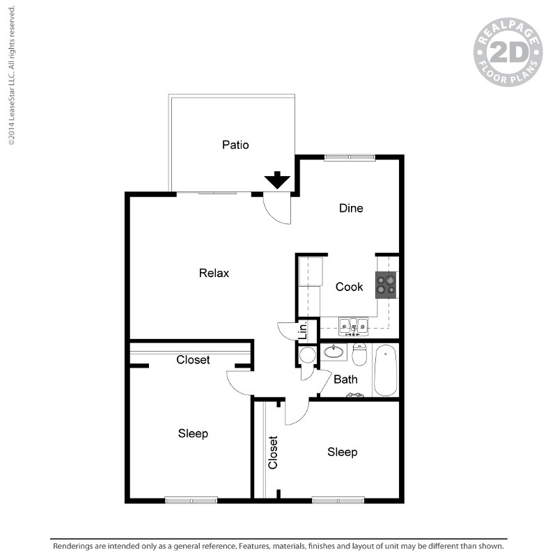 Large 2 Bed 1 Bath - Floorplan 5 Floor plans are artist's rendering. All dimensions are approximate. Actual product and specifications may vary in dimension or detail. Not all features are available in every rental home. Prices and availability are subject to change. Base rent is based on monthly frequency. Additional fees may apply, such as but not limited to package delivery, trash, water, amenities, etc. Deposits vary. Please see a representative for details.