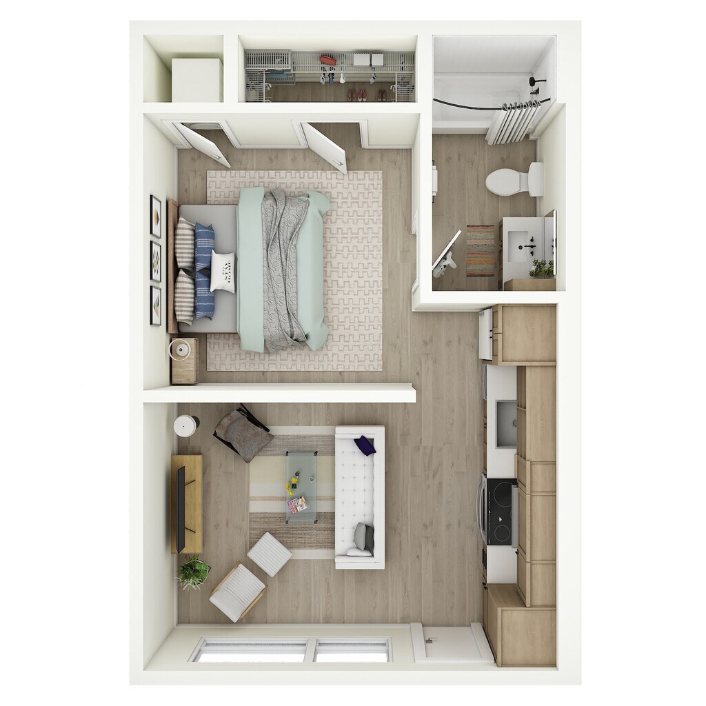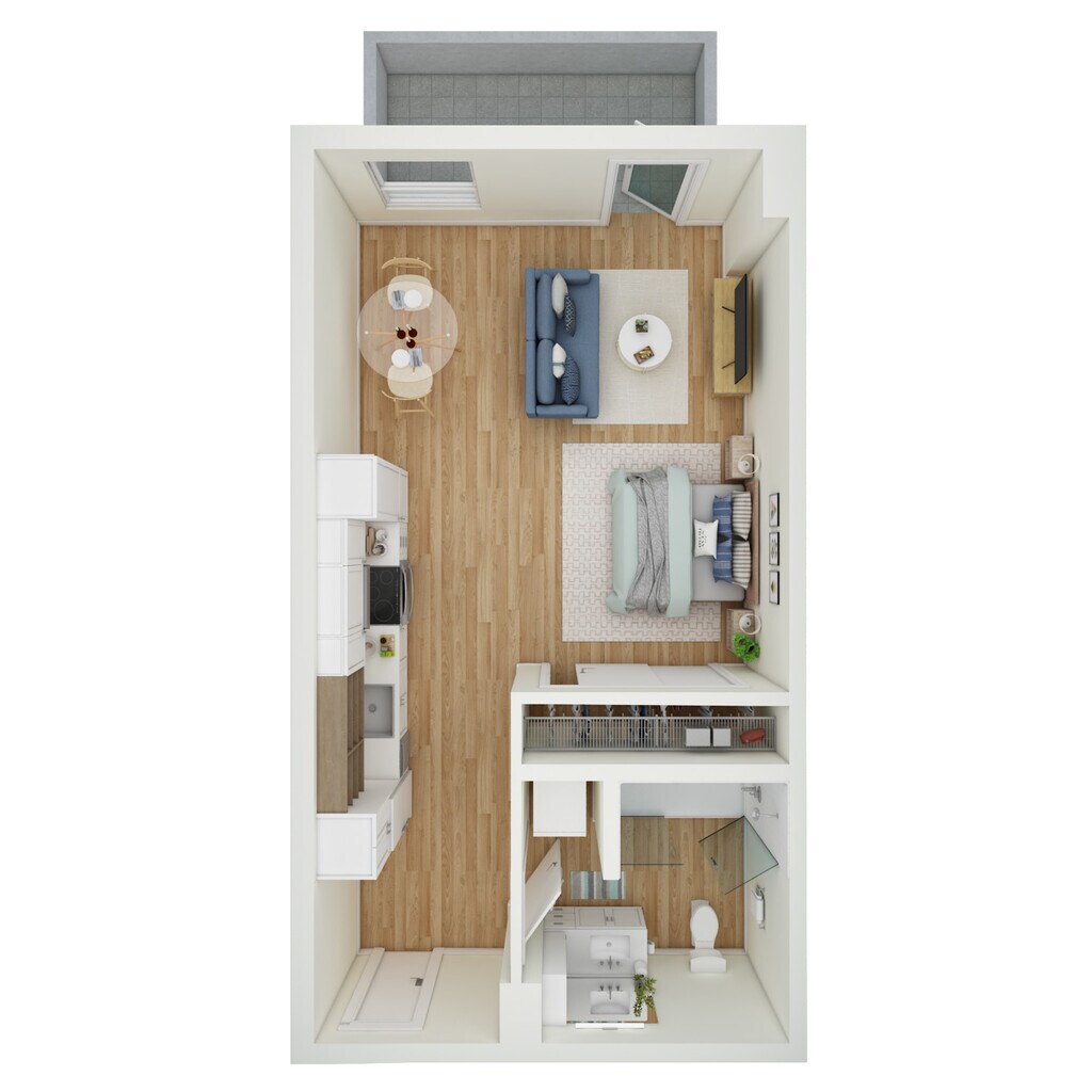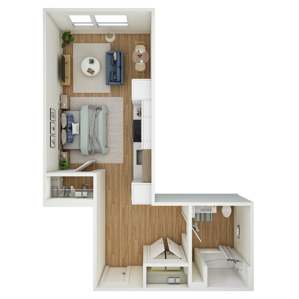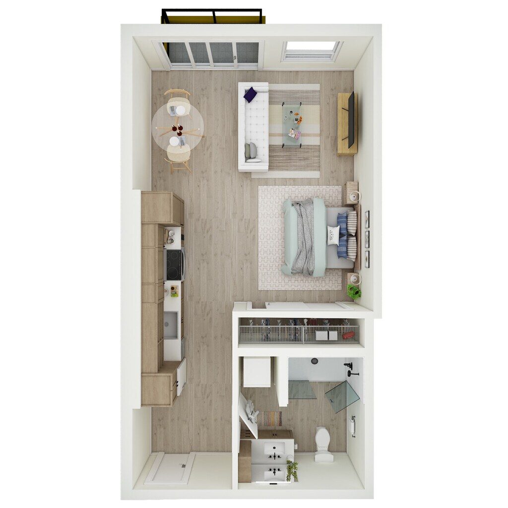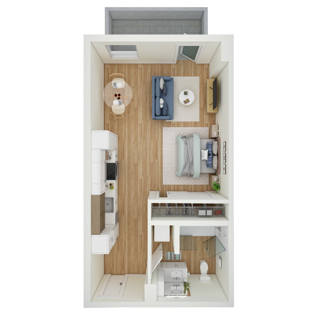 Studio - e4.1 - Floorplan 11 Apartment Unit: 032Apartment Model: Studio - e4.1$2,089Studio, 1 Bath, 466 sq ftAvailable NowFloorplansPhotos![]()