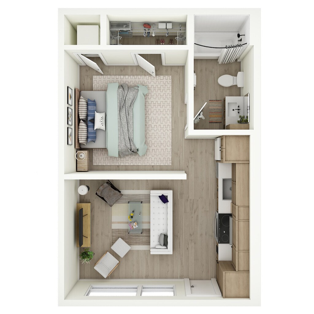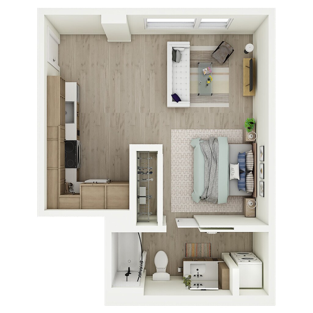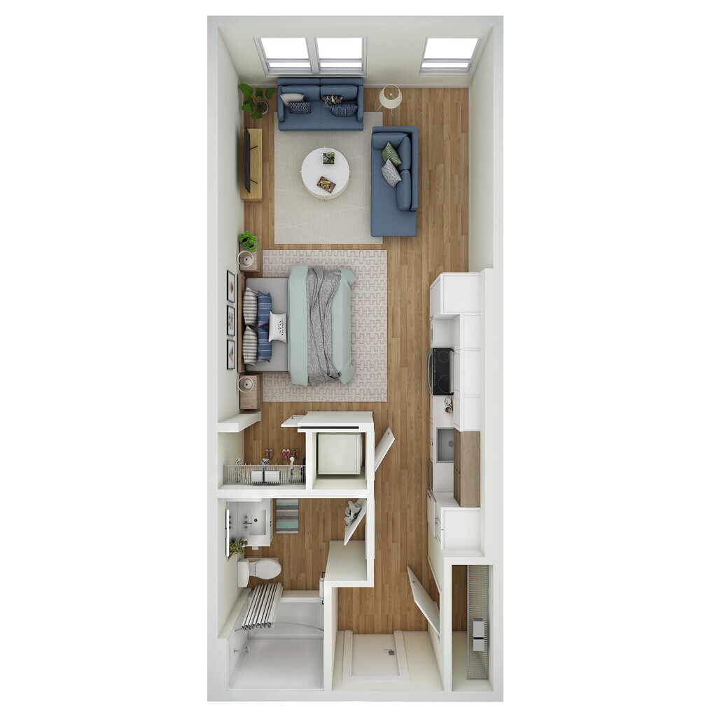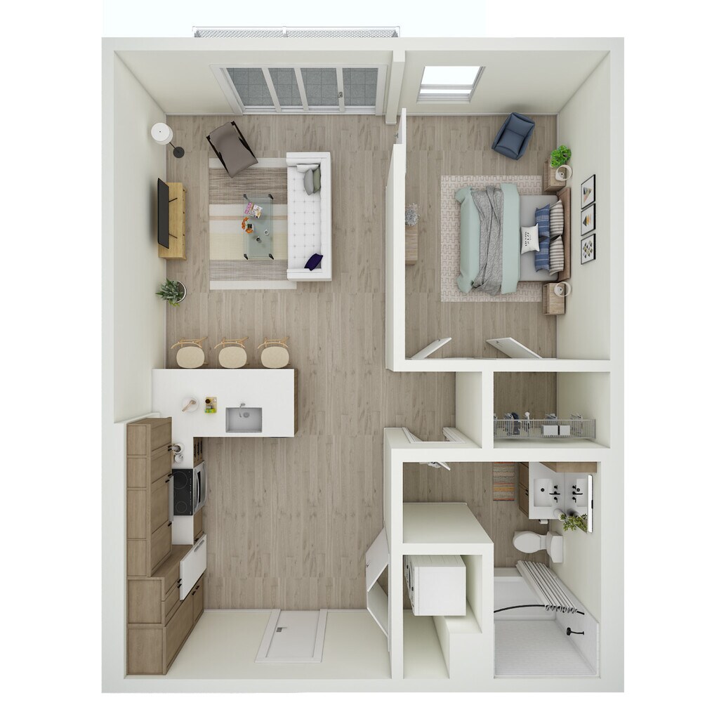 Studio - e4.1 - Floorplan 11 Apartment Unit: 032Apartment Model: Studio - e4.1$2,089Studio, 1 Bath, 466 sq ftAvailable NowFloorplansPhotos![]()