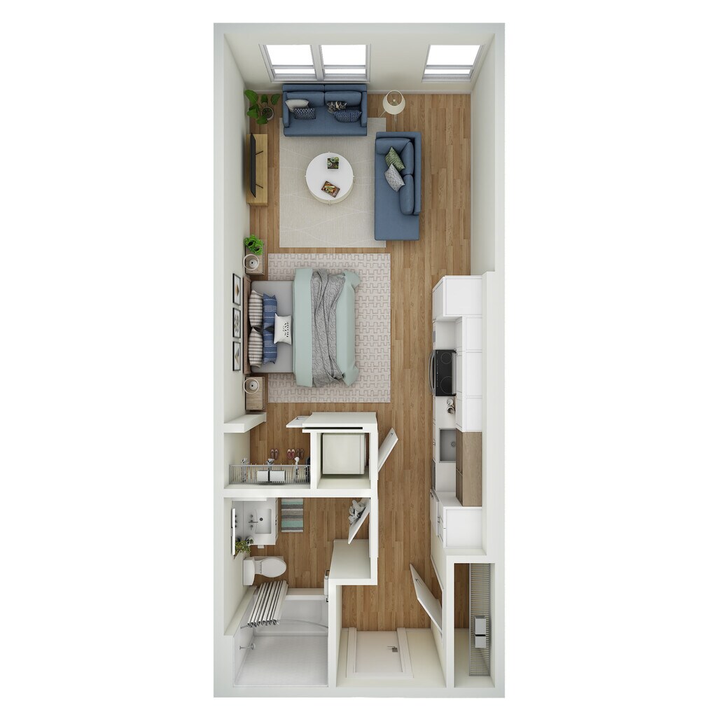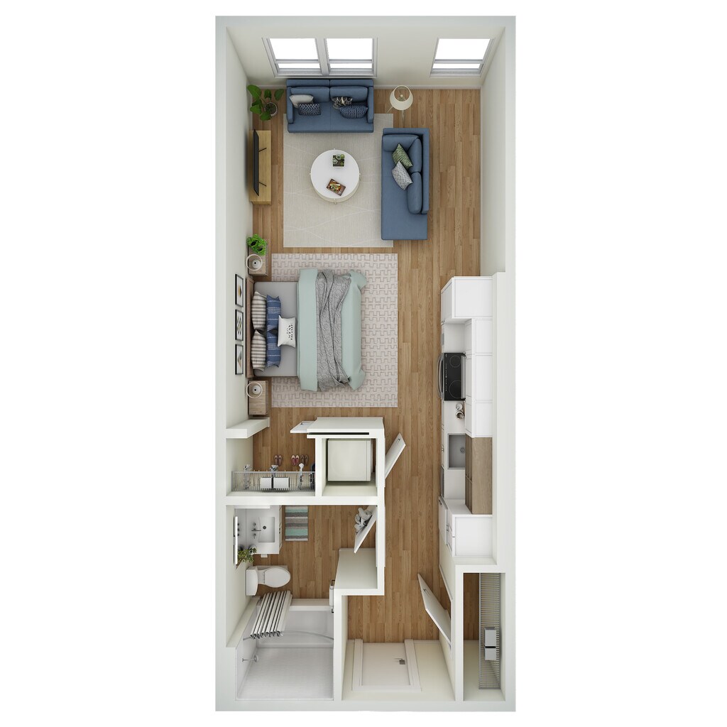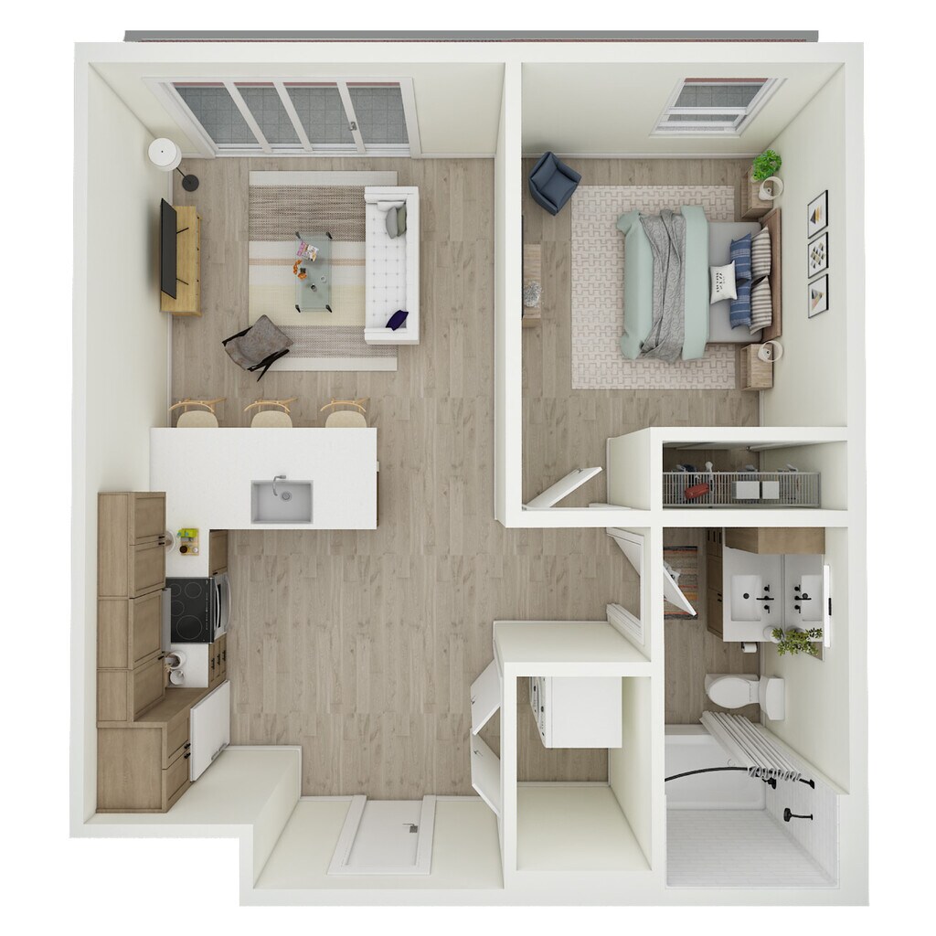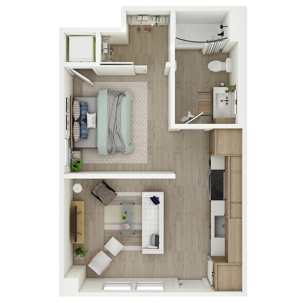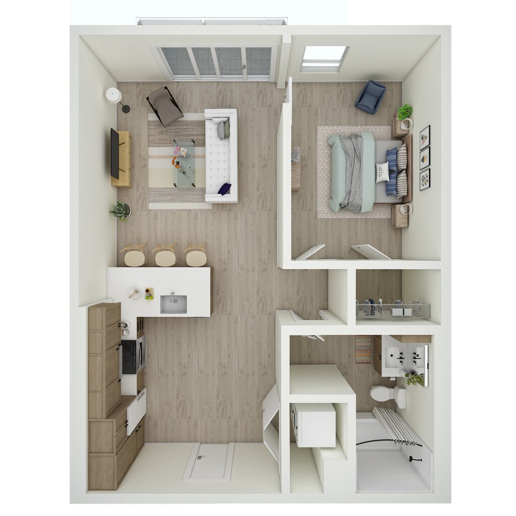 Studio - e4.1 - Floorplan 11 Apartment Unit: 032Apartment Model: Studio - e4.1$2,089Studio, 1 Bath, 466 sq ftAvailable NowFloorplansPhotos![]()