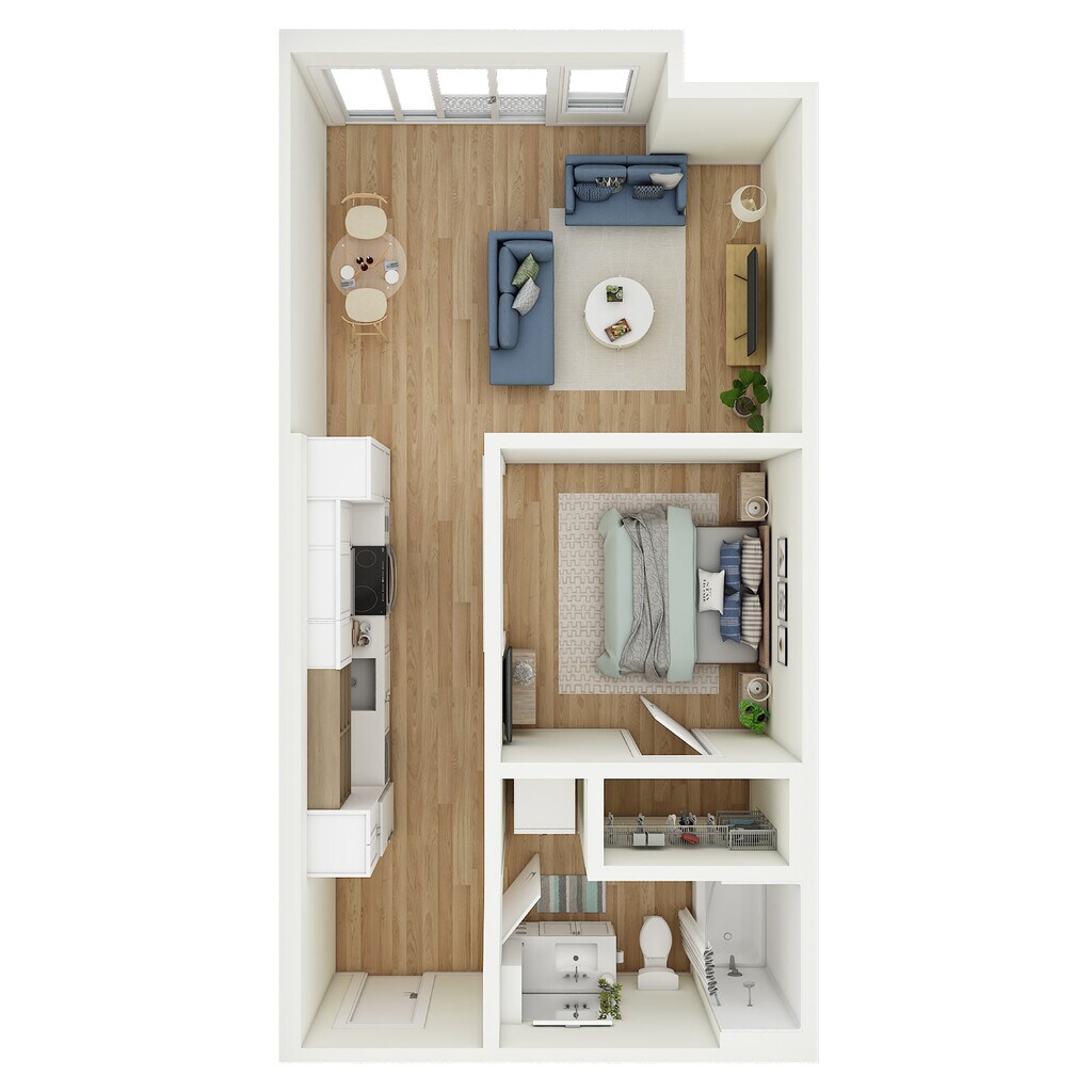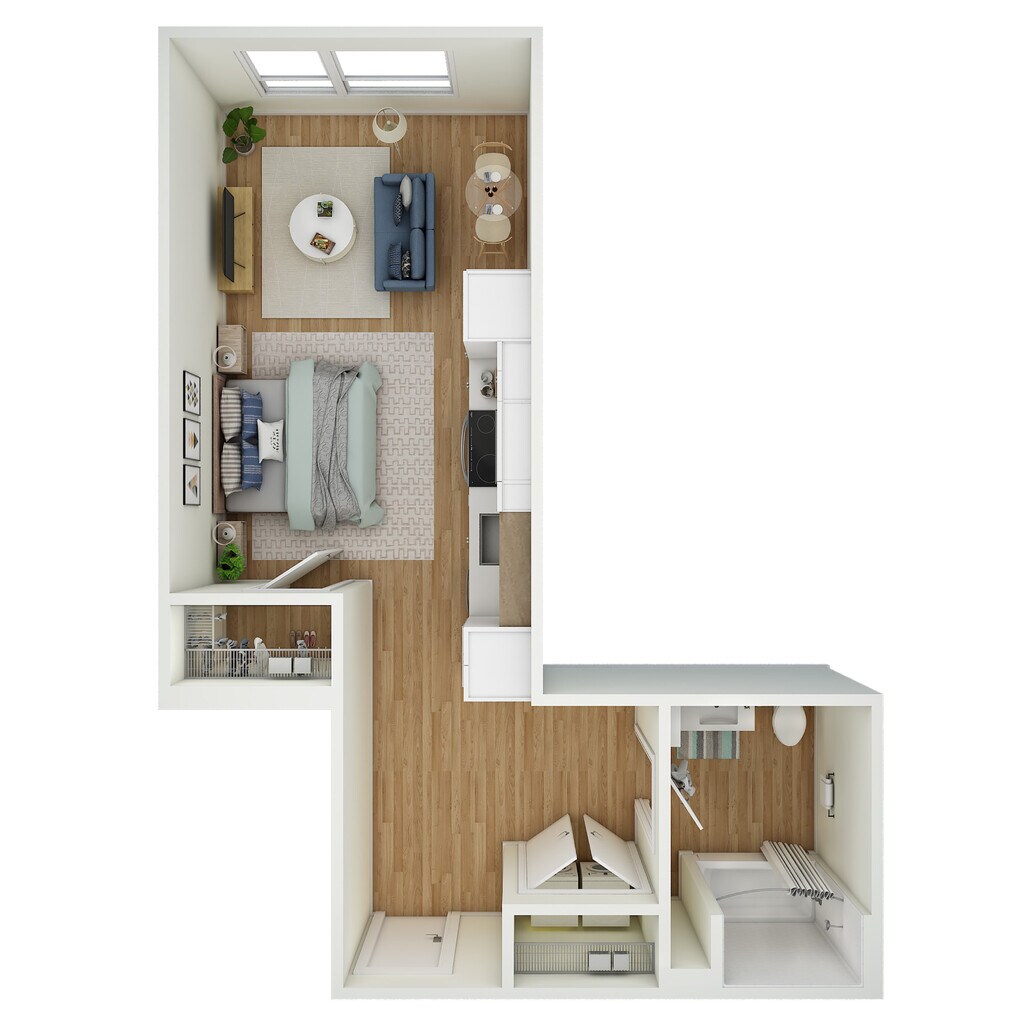 Studio, 1 Bath, 488 sq ftAvailable NowModel Gallery