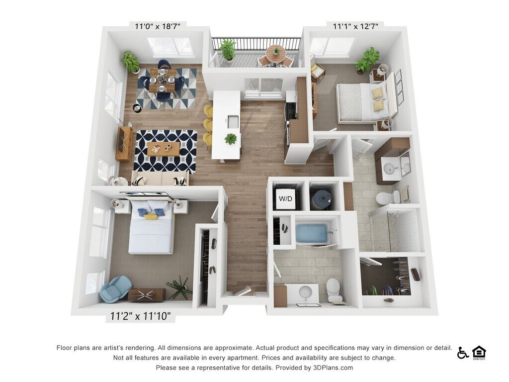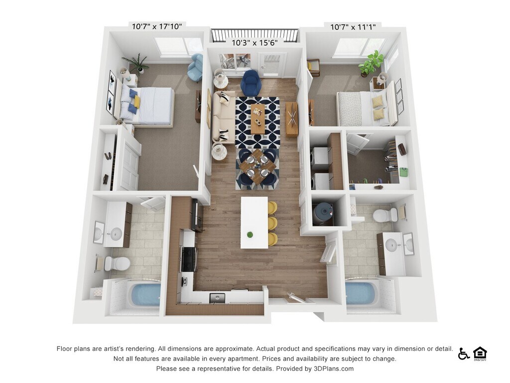 Apartment Model: B52 Bedroom, 2 Bath, 1101 sq ftAvailable NowFloor plans are artist's rendering. All dimensions are approximate. Actual product and specifications may vary in dimension or detail. Not all features are available in every rental home. Prices and availability are subject to change. Base rent is based on monthly frequency. Additional fees may apply, such as but not limited to package delivery, trash, water, amenities, etc. Deposits vary. Please see a representative for details.