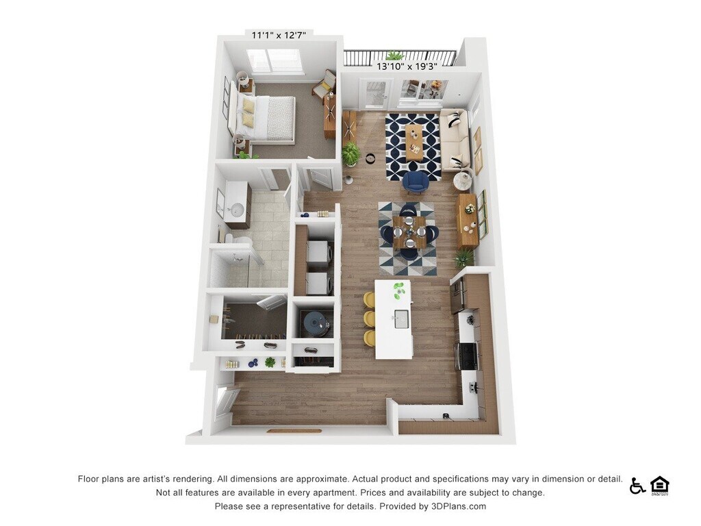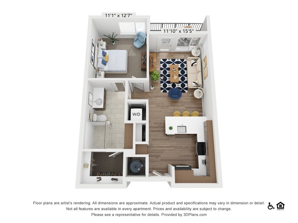 Apartment Model: A51 Bedroom, 1 Bath, 740 sq ftAvailable NowFloor plans are artist's rendering. All dimensions are approximate. Actual product and specifications may vary in dimension or detail. Not all features are available in every rental home. Prices and availability are subject to change. Base rent is based on monthly frequency. Additional fees may apply, such as but not limited to package delivery, trash, water, amenities, etc. Deposits vary. Please see a representative for details.