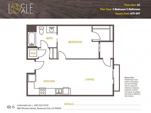 Apartment Model: 1C1 Bedroom, 1 Bath, 679-697 sq ftAvailable January 24, 2026![]()