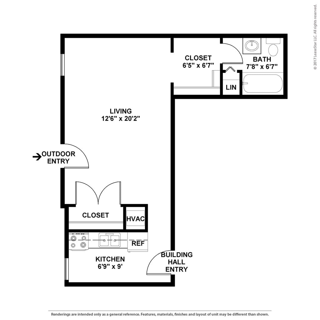 Studio- Renovated - Floorplan 4 1 Bedroom