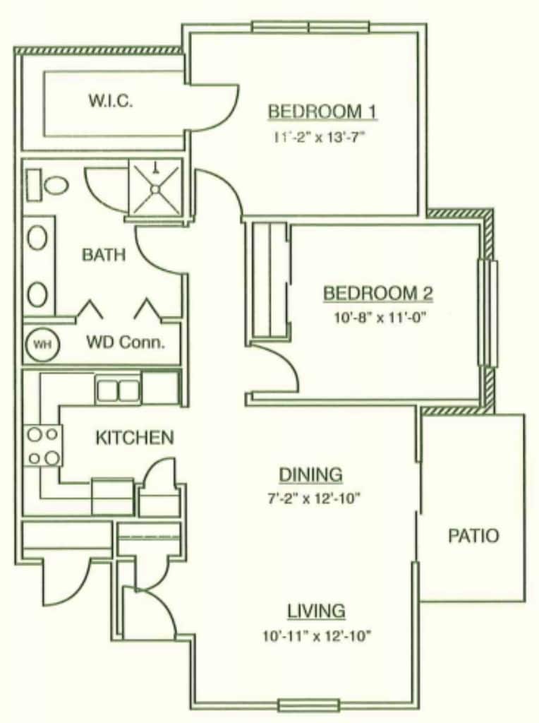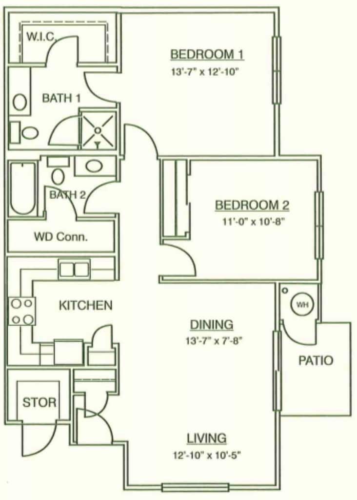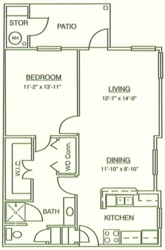 1X1 Single Story Cottage - Floorplan 1 2 Bedrooms
