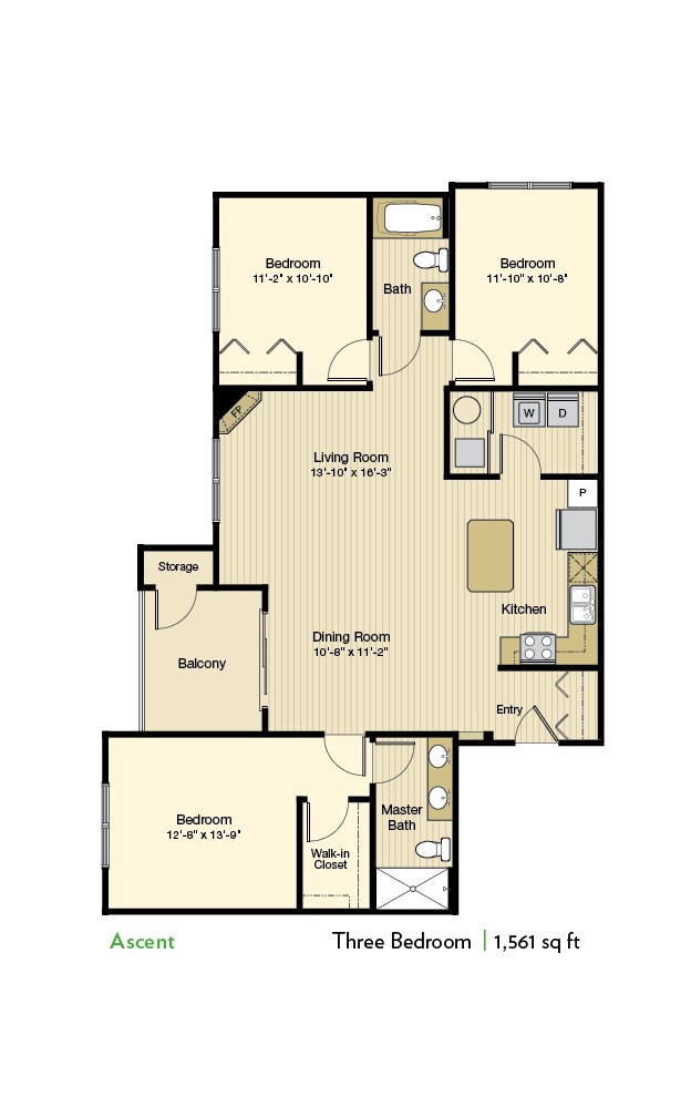 Apartment Model: Ascent3 Bedroom, 2 Bath, 1561 sq ftAvailable Now![]()
