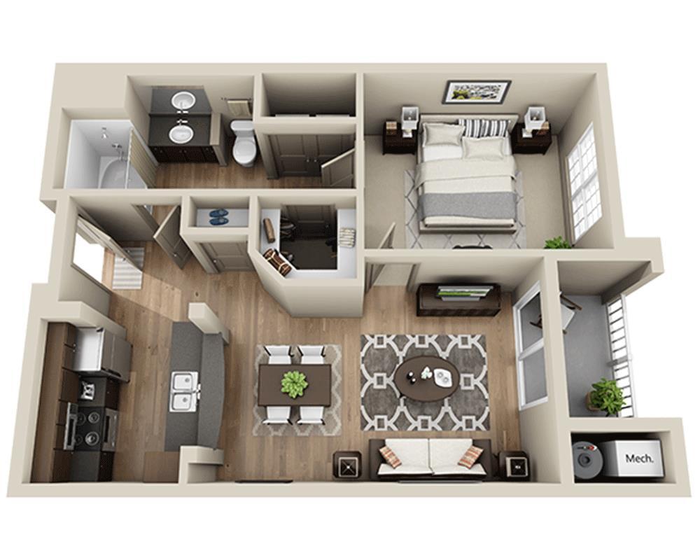 Apartment Model: One Bedroom A1A-MMRCall For Rates1 Bedroom, 1 Bath, 714 sq ftUnavailableOne Bedroom A1A-MMR - Floorplan 1 Plan B (A1B)