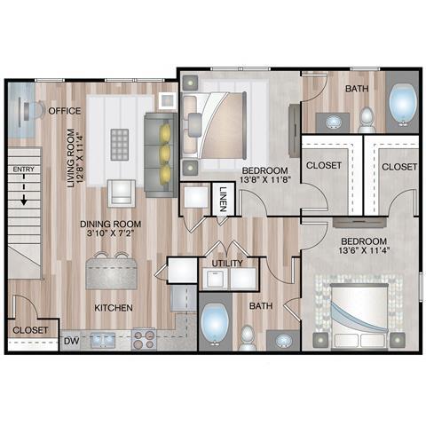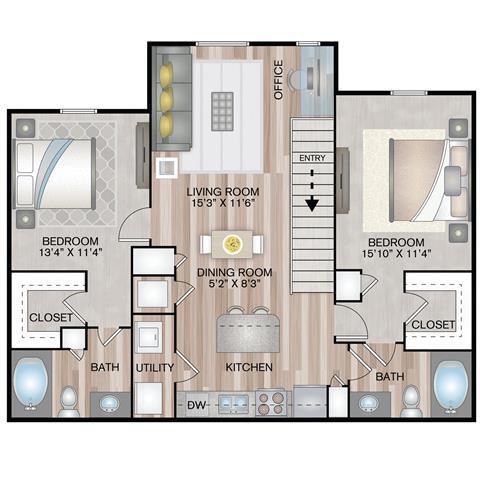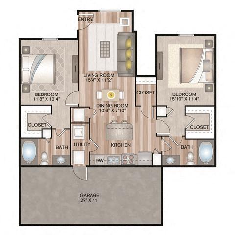 2 Beds, 2 Baths, 1018 sq ftAvailable NowModel Gallery