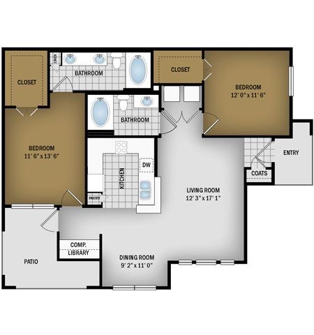 Apartment Model: A2From $1,1191 Bedroom, 1 Bath, 802 sq ftAvailable Now![]()