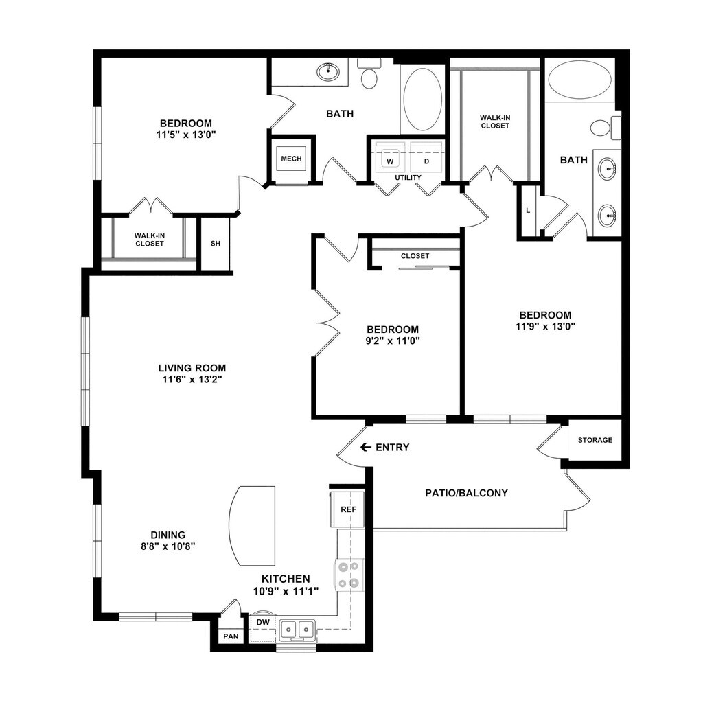 Apartment Model: A3From $1,1451 Bedroom, 1 Bath, 810 sq ftAvailable Now![]()