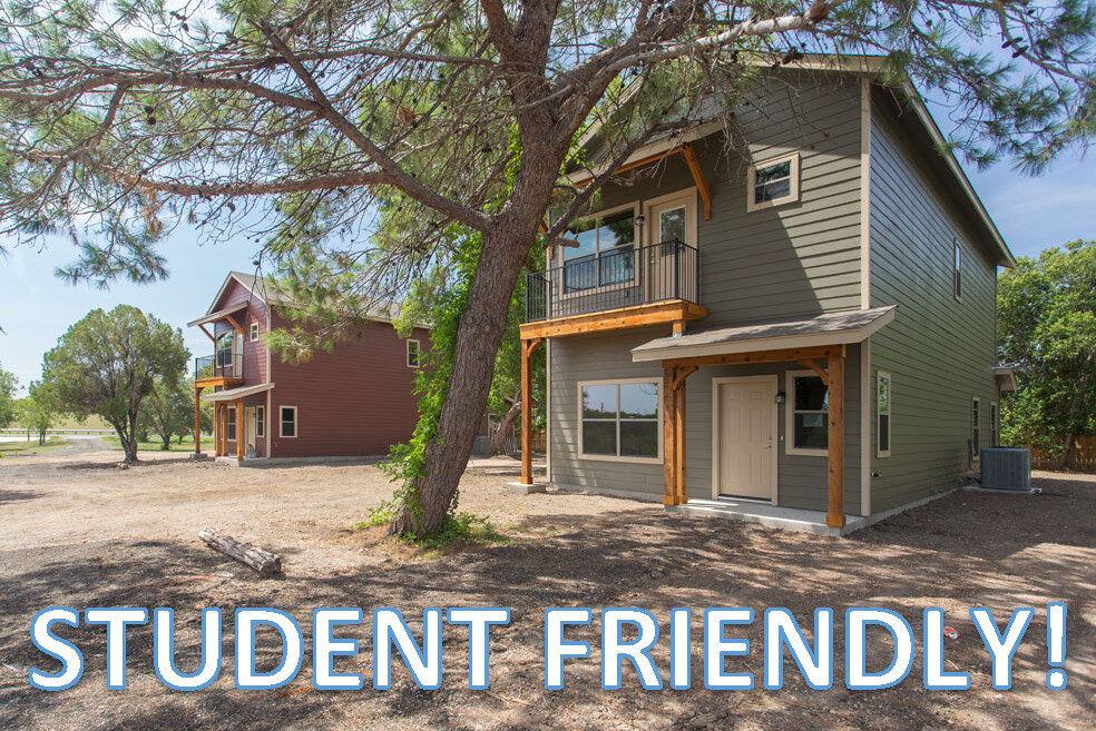 A TRUE STUDENT FRIENDLY 4 bed/4 bath. (rates starting at $775 per bedroom) With an average of greater than 50 feet between houses we've got the ultimate social distancing between neighbors! Recent construction. Large Fenced Yards. 1 Gig Fiber Internet included. Water included. Lawn Care included. Country rental housing. 40 acres with 17 houses adjoining a 10 acre pond. Additional tank on property. Fishing/Open Space! 6.5 miles from courthouse square. 1.5 miles from I-35. Behind outlet malls. Pets welcome but they will require owner approval. The 3 bedrooms upstairs have private balconies. Walk in closets. Leases available to start July and August 1.