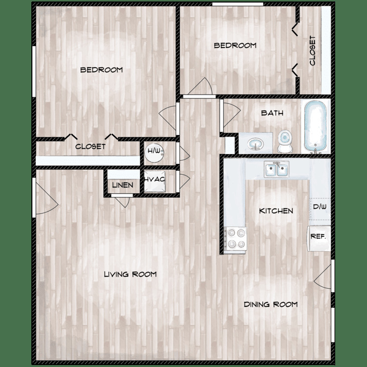 2 Beds, 1 Bath, 748 sq ftModel Gallery