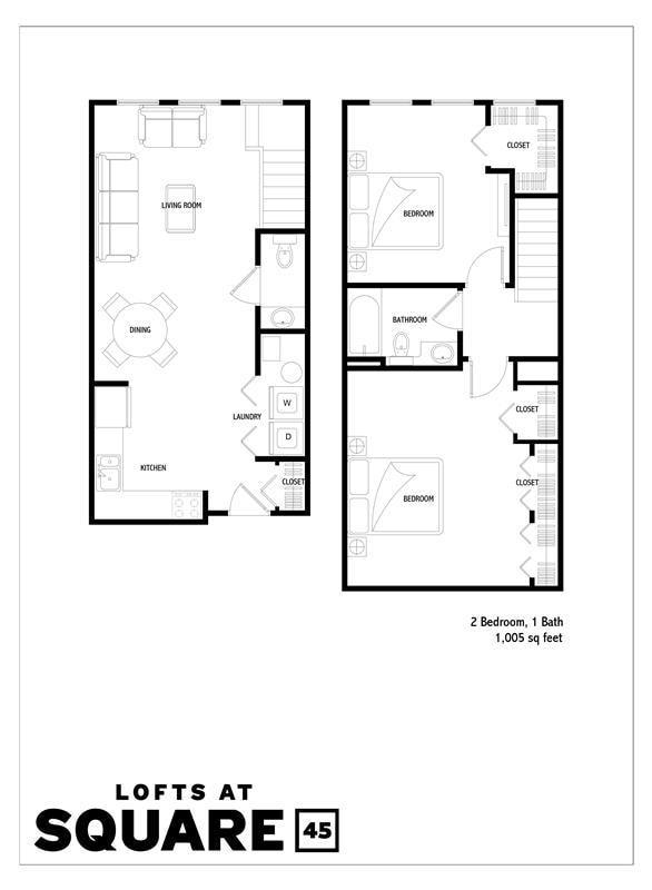 1 Bedroom to 2 Bedroom Apartments at Loft 45 currently range from $1,244 to $1,646