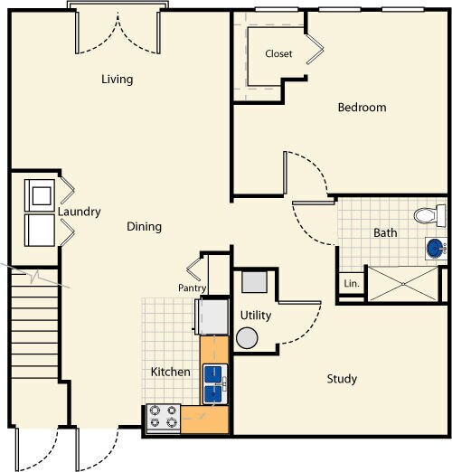 1 Bed 1 Bath - Floorplan 1 1 Bed 1 Bath