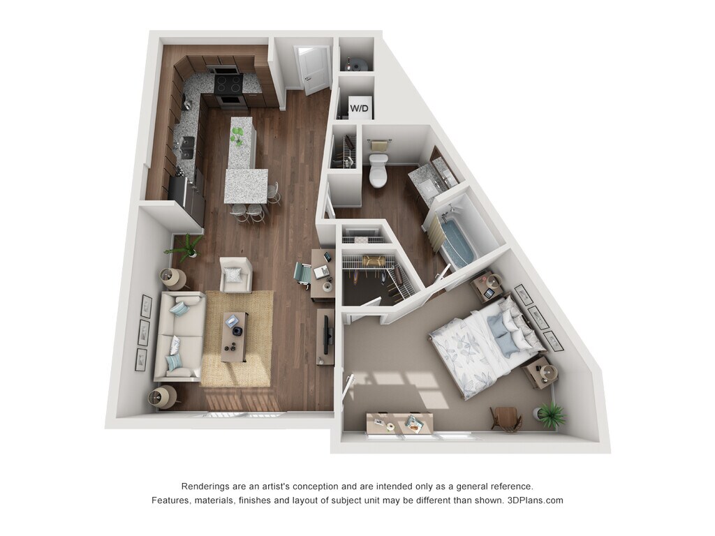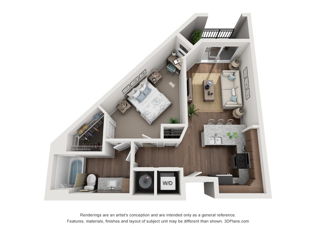 Apartment Model: A3b$1,8821 Bedroom, 1 Bath, 800 sq ftAvailable NowFloor plans are artist's rendering. All dimensions are approximate. Actual product and specifications may vary in dimension or detail. Not all features are available in every rental home. Prices and availability are subject to change. Base rent is based on monthly frequency. Additional fees may apply, such as but not limited to package delivery, trash, water, amenities, etc. Deposits vary. Please see a representative for details.