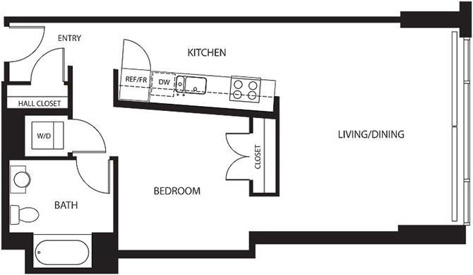 1D Renovation 2 - Floorplan 1 Apartment Unit: 23-204Apartment Model: 1D Renovation 21 Bedroom, 1 Bath, 770 sq ftAvailable NowFloorplan 1A