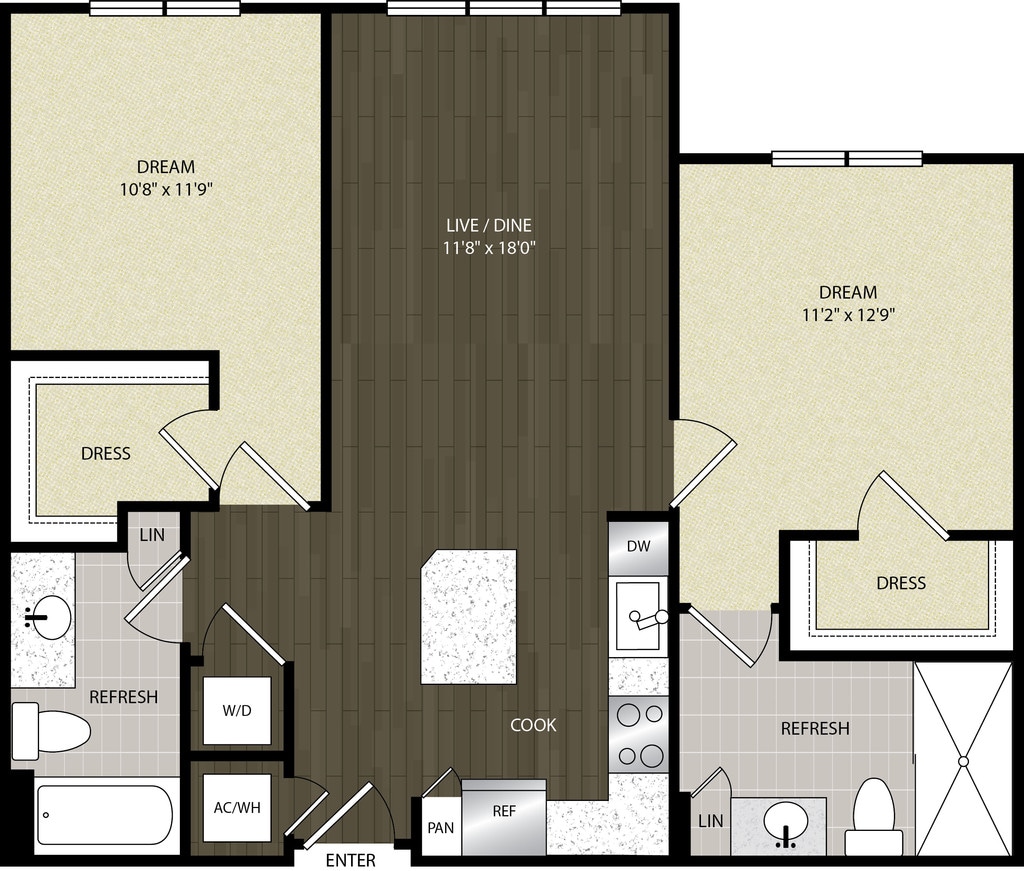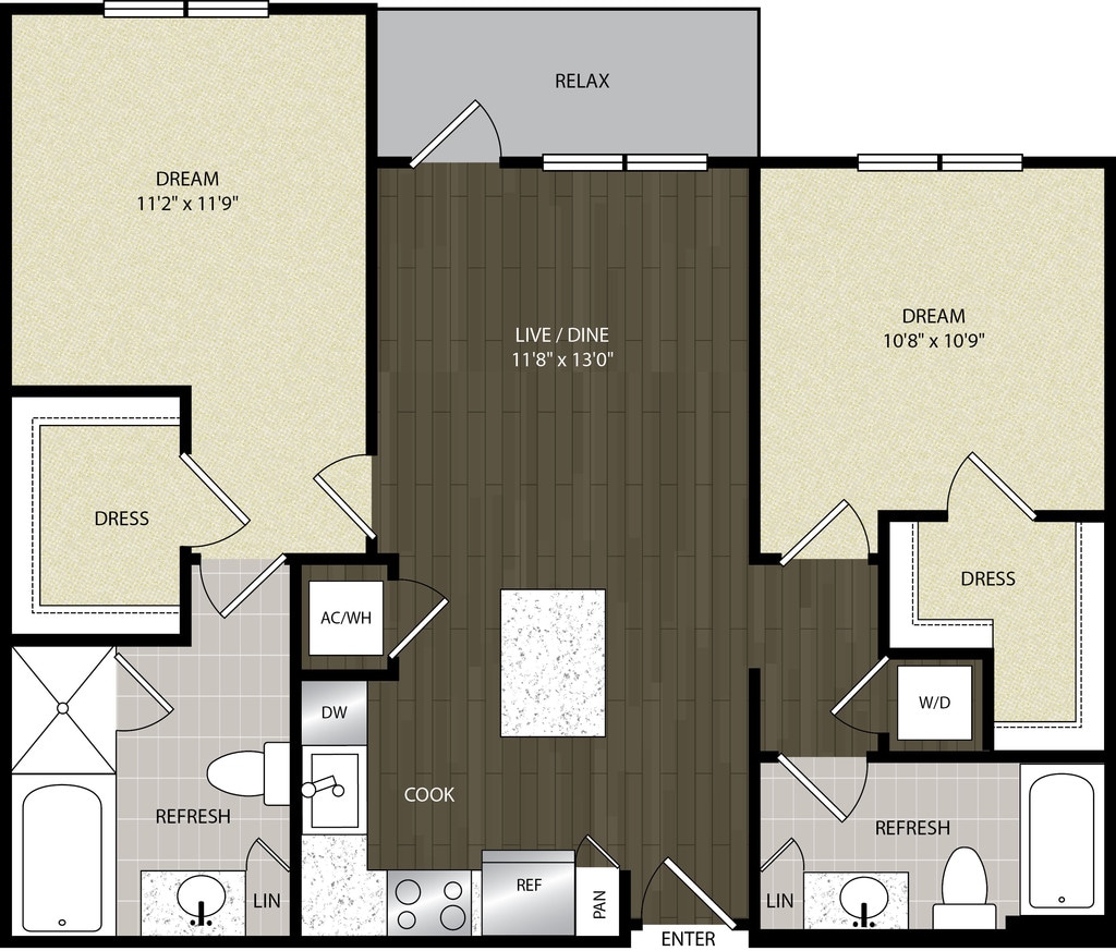1 Bed, 1 Bath, 667 sq ftAvailable NowModel Gallery