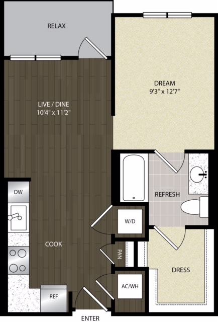 Studio, 1 Bath, 578 sq ftModel Gallery