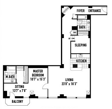 Studio C With Balcony - Floorplan 1 1 Bedroom