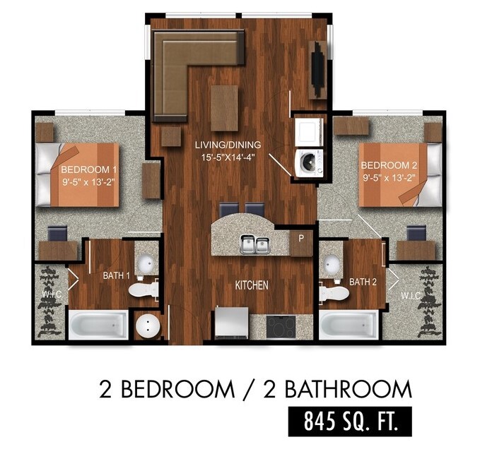 2 Beds, 2 Baths, 845 sq ftModel Gallery
