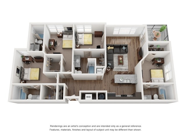 3BR/3BA - Flat - Floorplan 1 4 Bedrooms