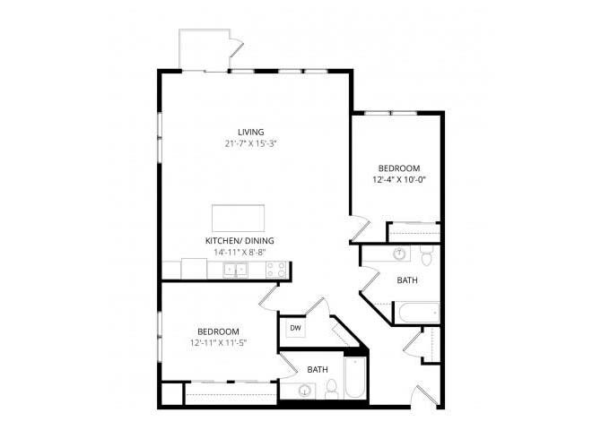 1 Bed, 1 Bath, 855 sq ftPlus FeesAvailable NowLargest 1 BedroomThis is the largest 1 Bedroom at this PropertyModel Gallery