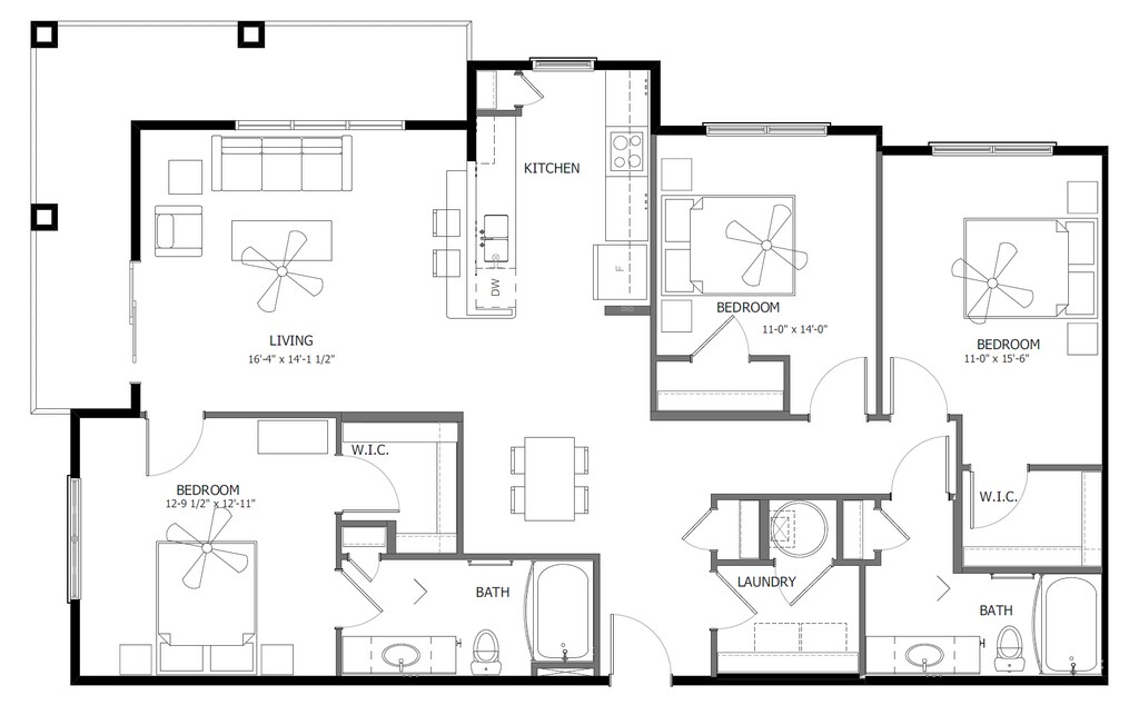 Apartment Model: A3From $1,2541 Bedroom, 1 Bath, 1006 sq ftAvailable Now![]()