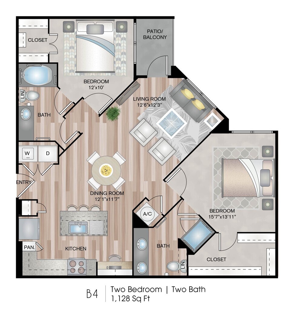 Apartment Model: A4From $1,6051 Bedroom, 1 Bath, 797 sq ftAvailable Now![]()
