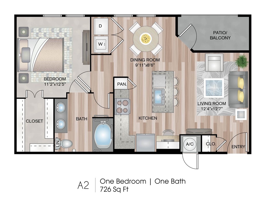 Apartment Model: A2From $1,5801 Bedroom, 1 Bath, 726 sq ftAvailable Now![]()