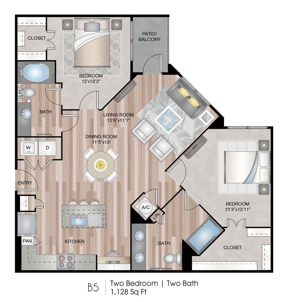 Apartment Model: B2From $2,0952 Bedroom, 2 Bath, 1007 sq ftAvailable Now![]()