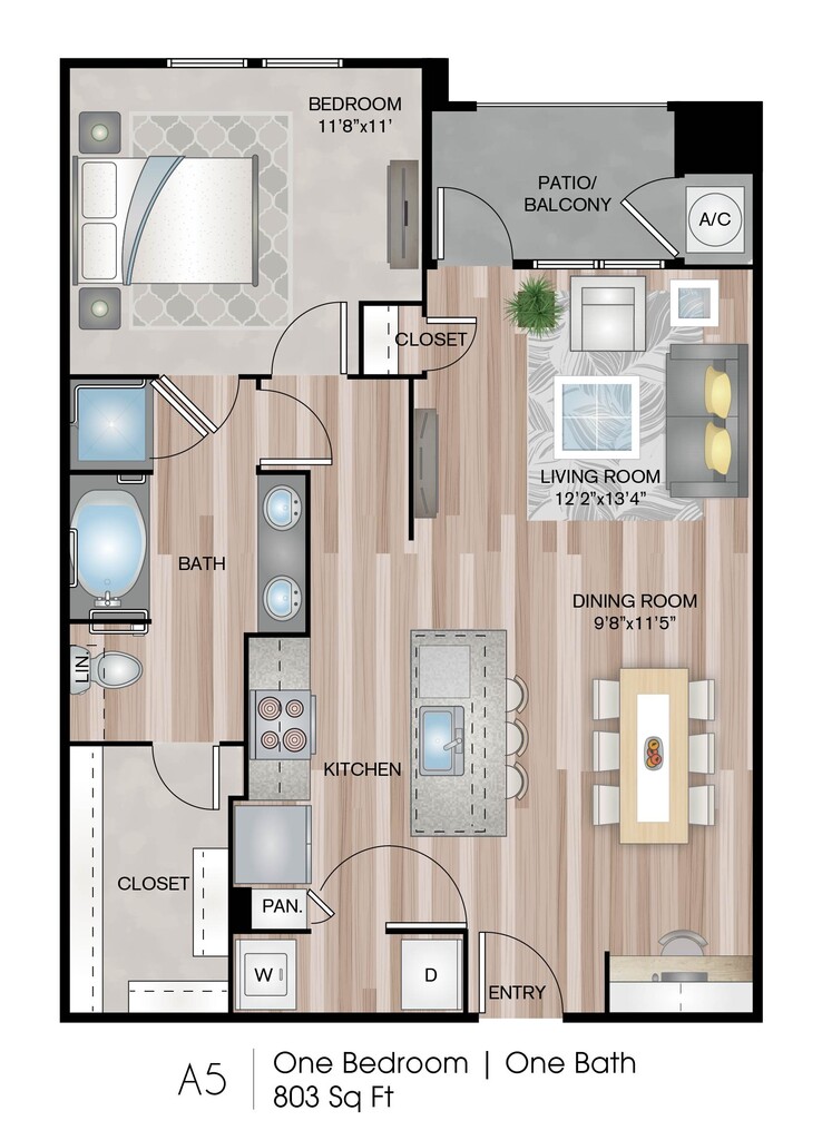Apartment Model: A5From $1,7001 Bedroom, 1 Bath, 803 sq ftAvailable Now![]()