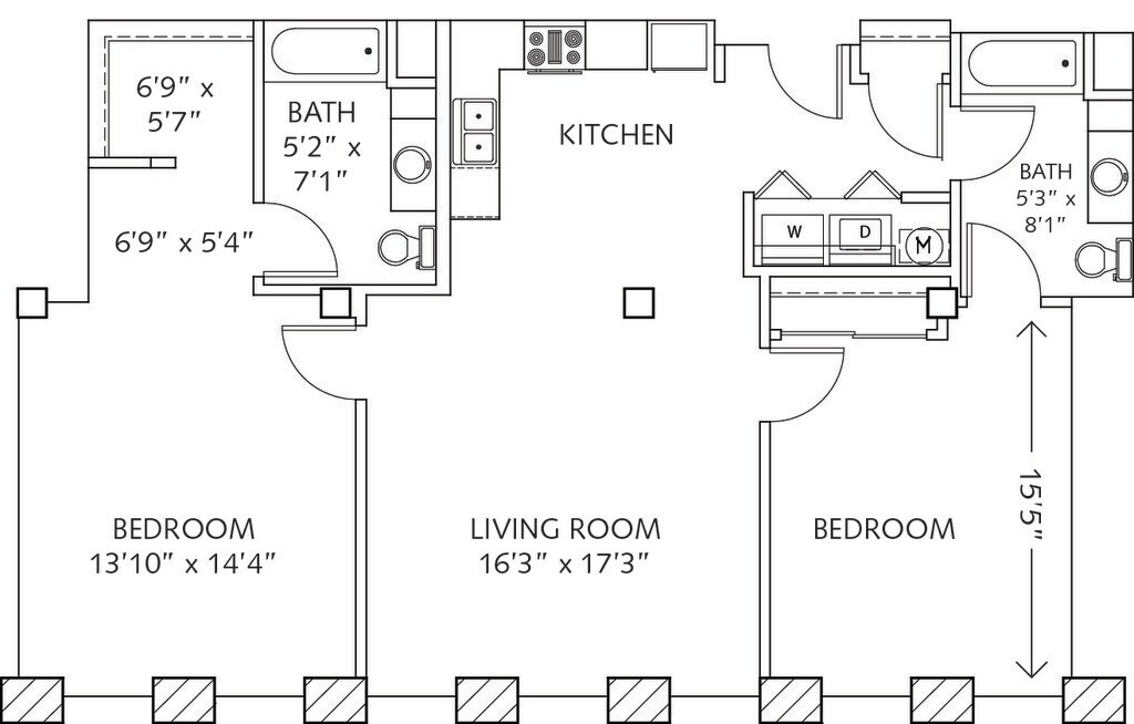 ML.S1 - Floorplan 1 Apartment Unit: 207Apartment Model: ML.S1$1,045Studio, 1 Bath, 743 sq ftAvailable March 3, 20261 Bedroom