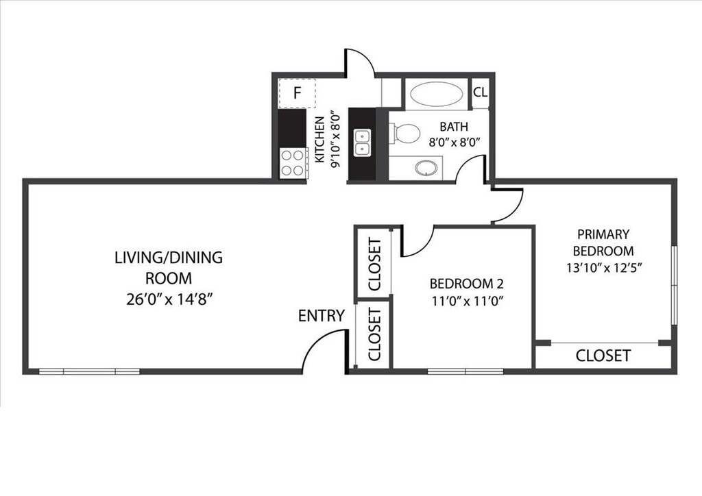 2 Beds, 1 Bath, 800 sq ftAvailable NowModel Gallery