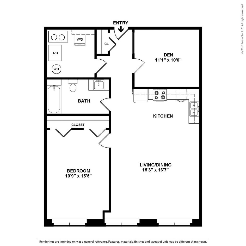 Apartment Model: 1 Bedroom with DenFrom $2,2001 Bedroom, 1 Bath, 865 sq ftAvailable Now![]()