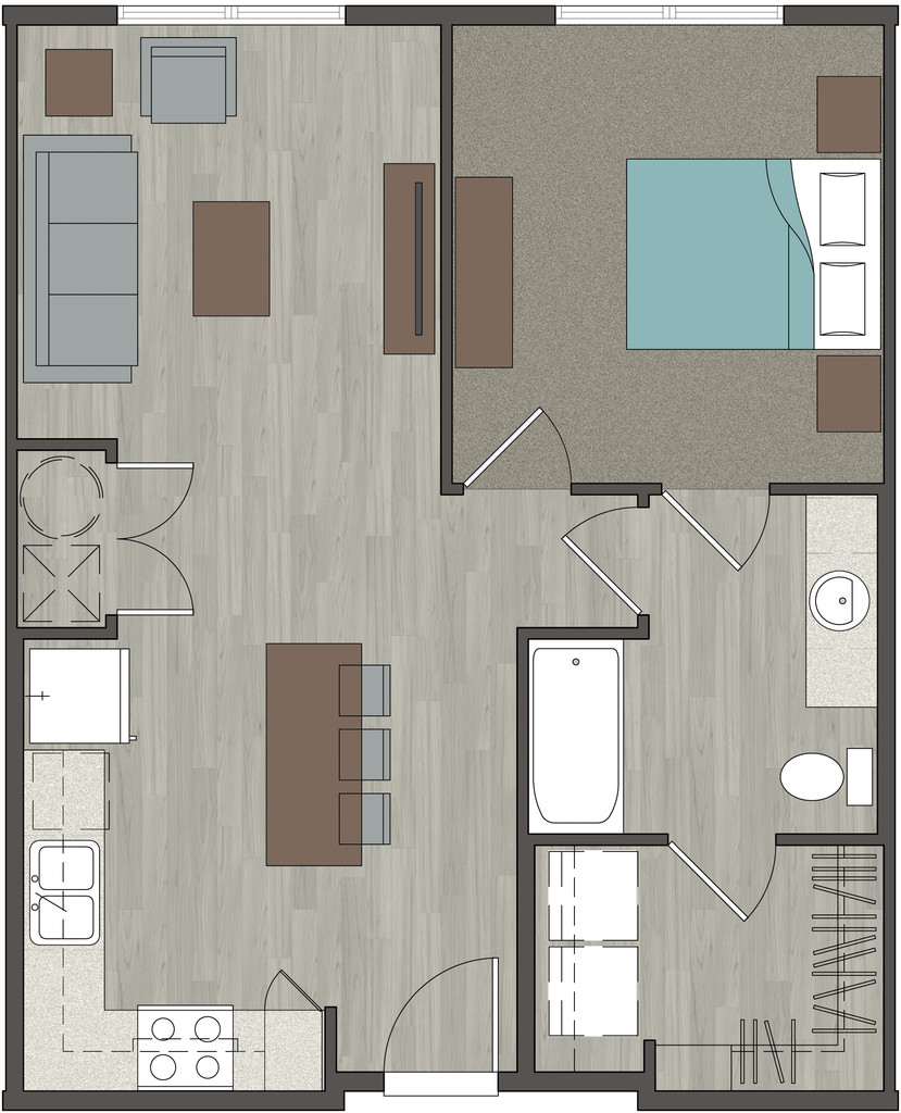 Studio 476 Sq. Ft. - Floorplan 1 1 Bedroom