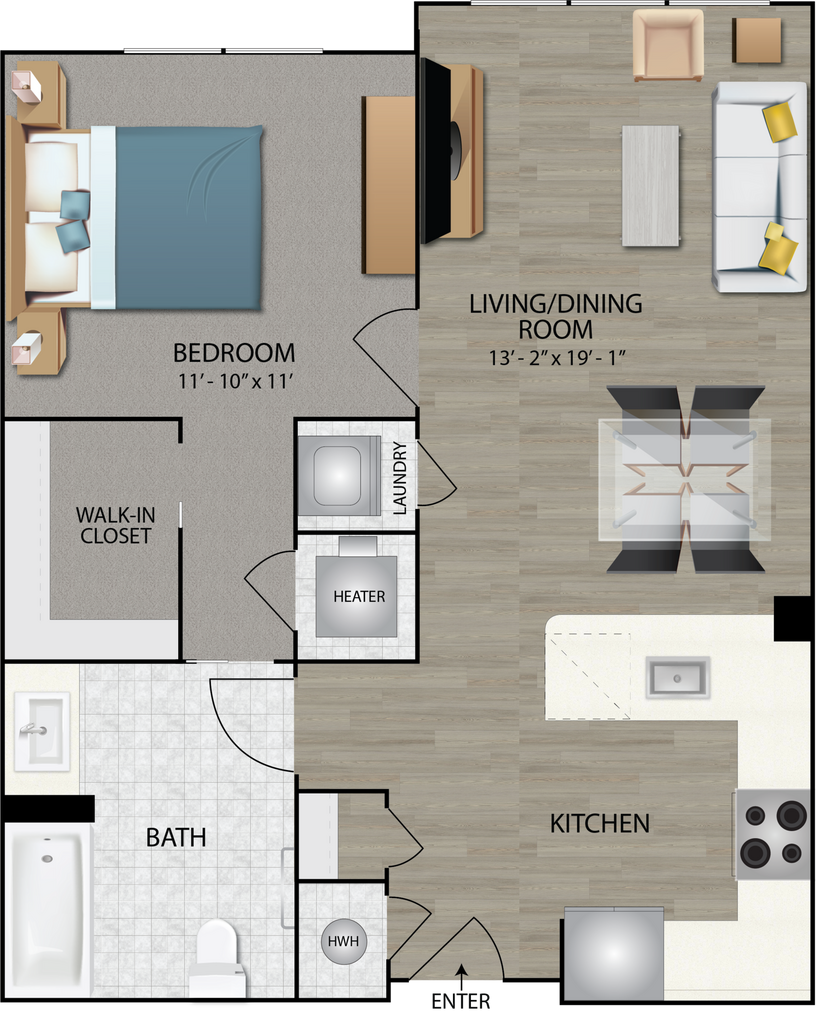 1 Bed, 1 Bath, 699 sq ftModel Gallery