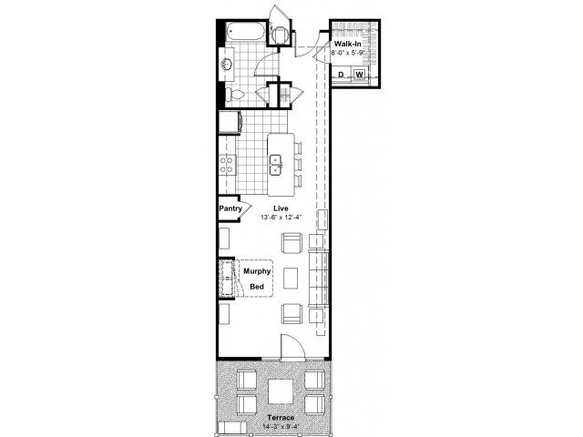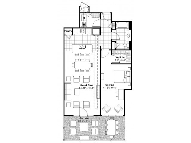 Apartment Model: 1 BR Den Terrace$1,6171 Bedroom, 1 Bath, 995 sq ftUnavailable1 BR Den Terrace - Floorplan 1 1 BR Den