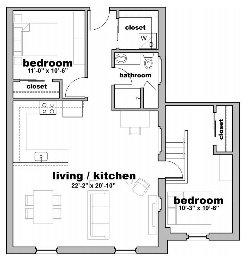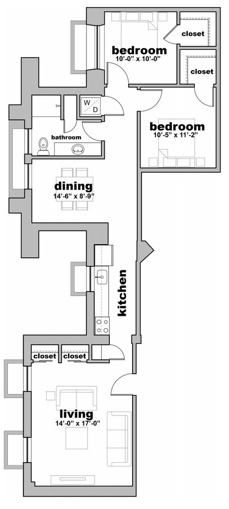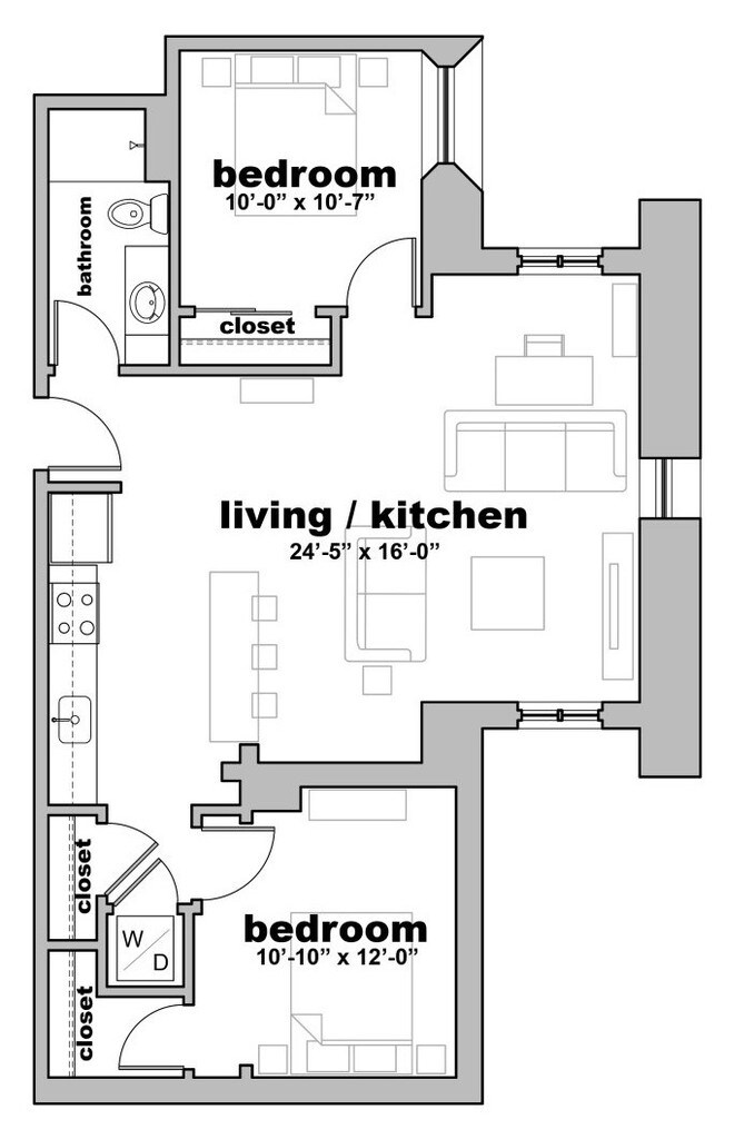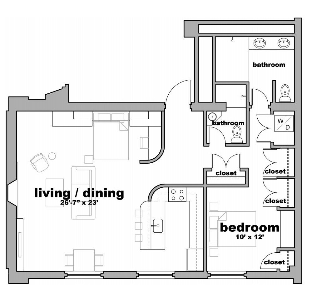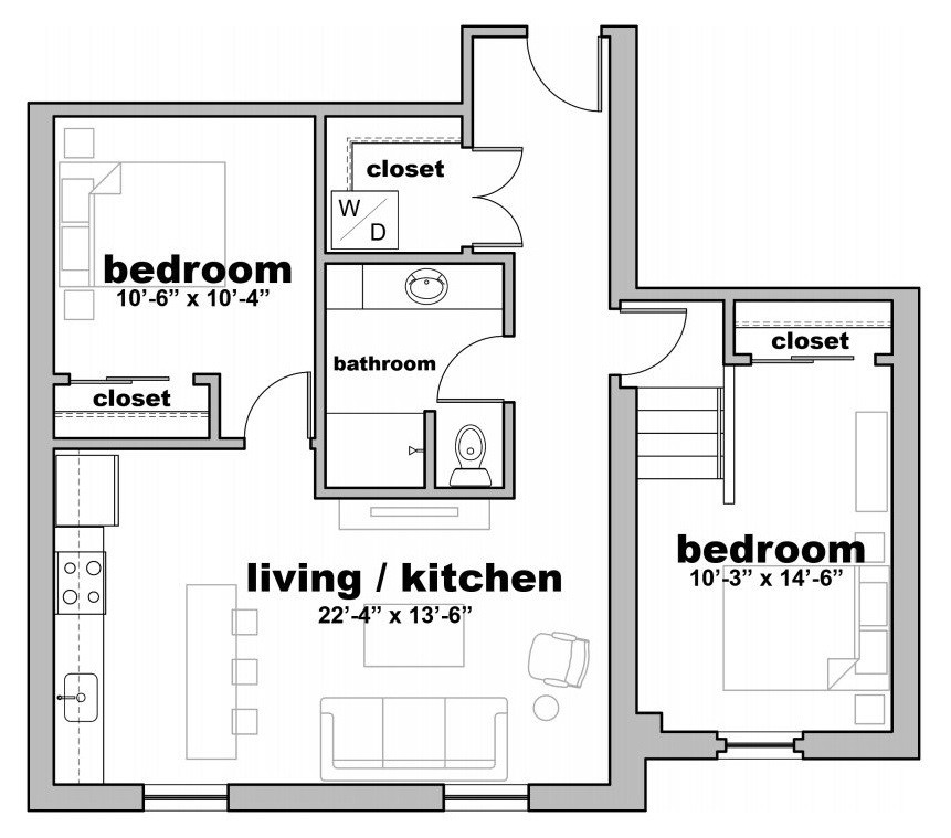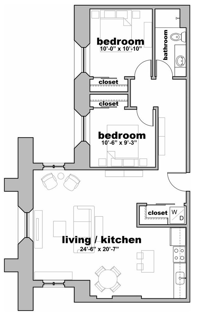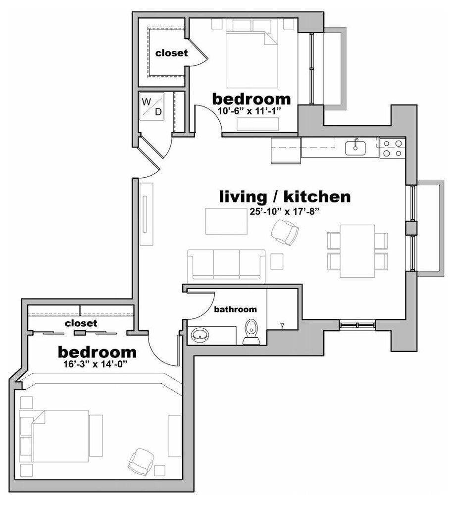 Unit 204 - Floorplan 1 1 Bedroom- #102