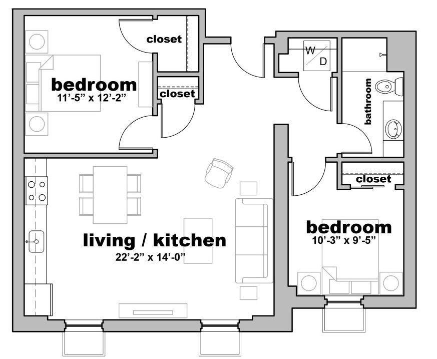 2 Beds, 1 Bath, 910 sq ftModel Gallery