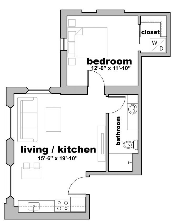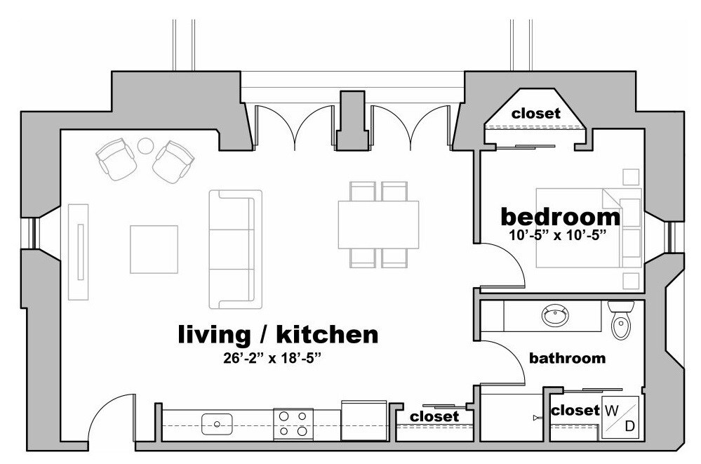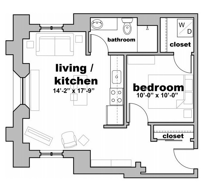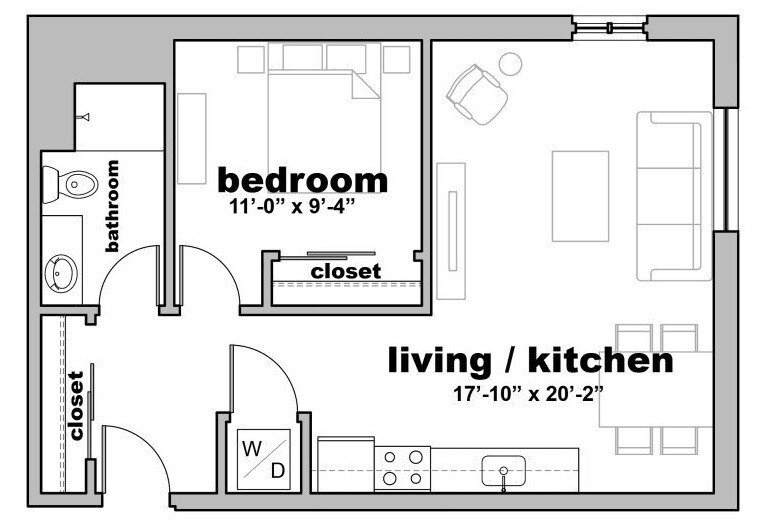 Unit 207 Studio - Floorplan 1 1 Bedroom