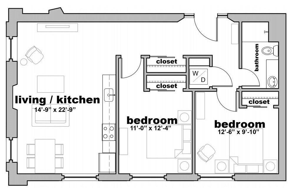 2 Beds, 1 Bath, 908 sq ftModel Gallery