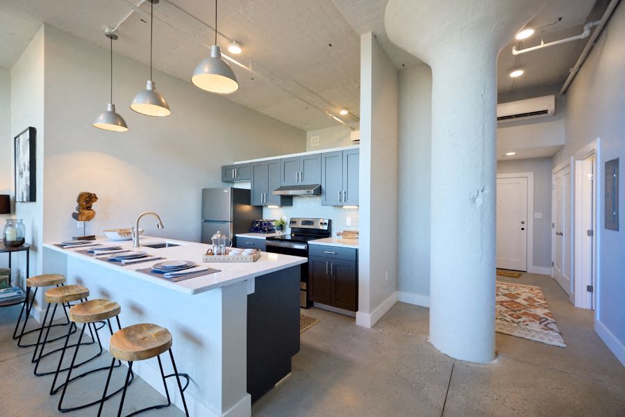 Studio to 2 Bedroom Apartments at Lofts on the Levee currently range from $1,795 to $2,345
