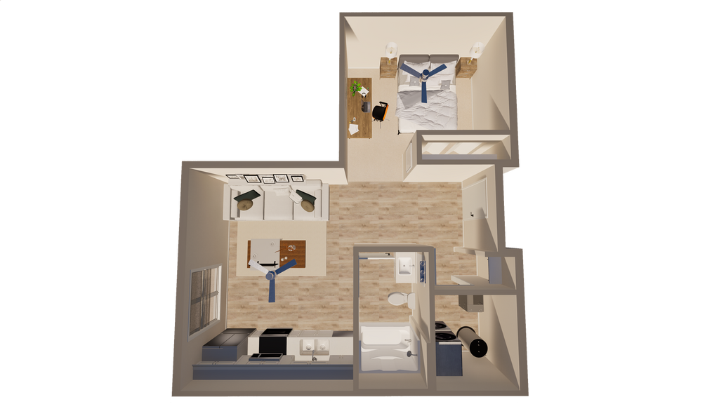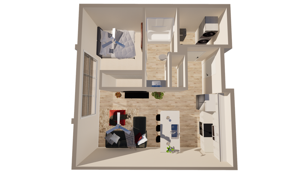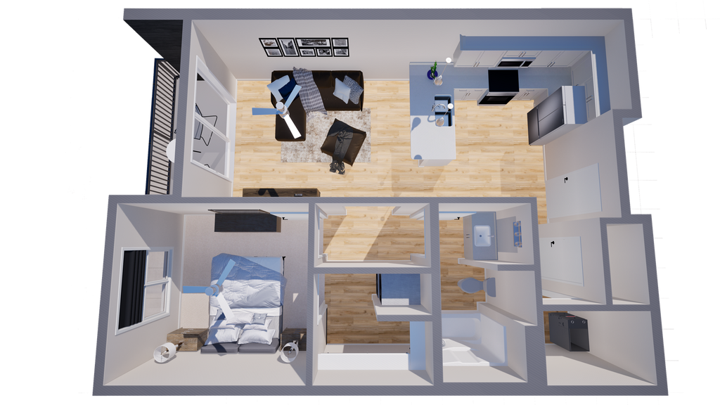 The Mallory is a well-designed studio layout offering 600 square feet of open, functional living space. It features a modern kitchen, a defined sleeping area, and a bright living space with large windows. A spacious bathroom, in-unit laundry, and a smart layout provide everything you need for simple, stylish living. With clean finishes and efficient use of space, the Mallory is ideal for those seeking a low-maintenance home in Cedar Rapids’ vibrant NewBo District.