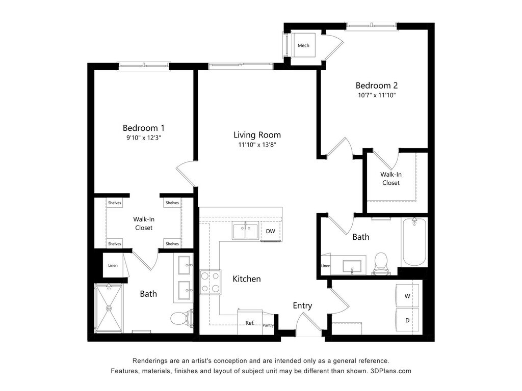 1 Bedroom B - 80 - Floorplan 2 2 Bedrooms