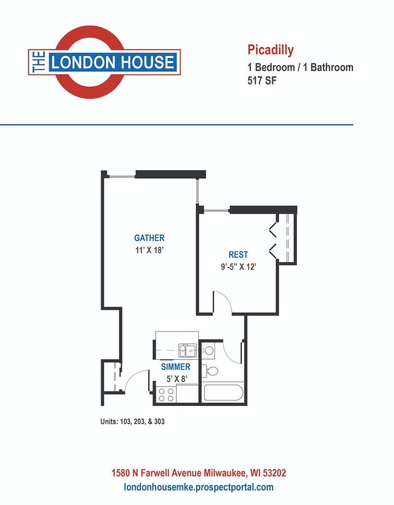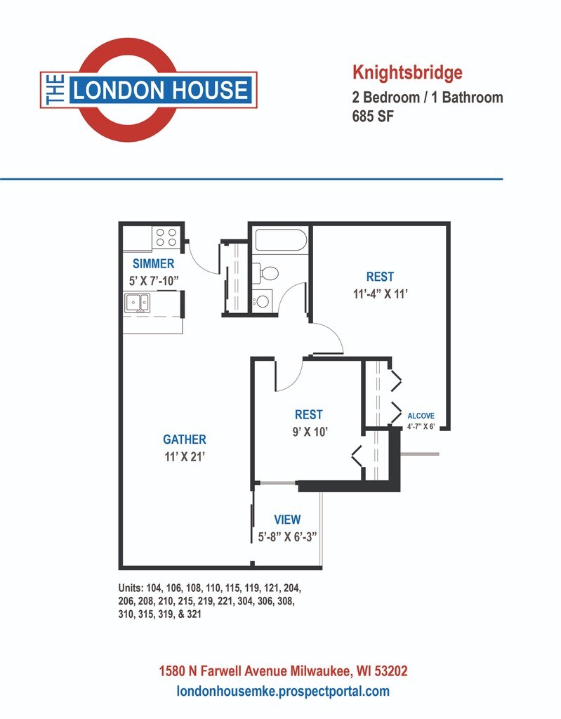 The London House apartments on Farwell avenue sits just a block away from the Oak Leaf Trail and Lincoln Memorial Drive which follow a gorgeous Milwaukee Lakefront. Hike or bike to the beach to lay out and relax, enjoy great food at Northpoint Custard, or play some volleyball! A beloved thoroughfare just steps away, Brady Street, allows you to enjoy new award-winning restaurants along with classic "old-Milwaukee" grocers, Glorioso's. Brady Street boasts an active night life along with fun vintage shops, so there's something for everyone! The building features: • On-site Commercial Washer/Dryers • Free on-site storage lockers • High Speed/Fiber-Optic Internet with SNIP • 24/7 Fitness Center • Controlled access lobby • Pet Friendly *Photos shown may vary from actual unit.