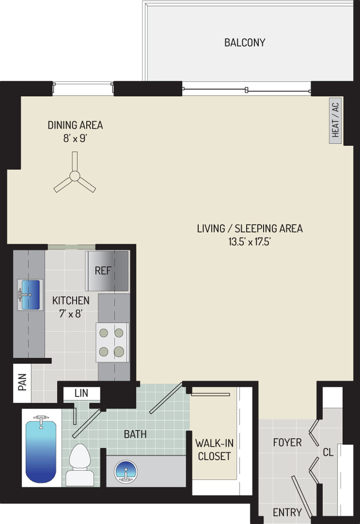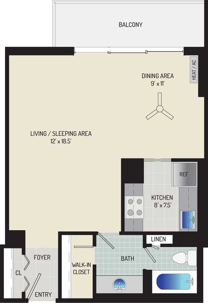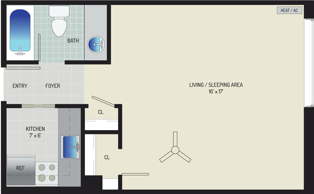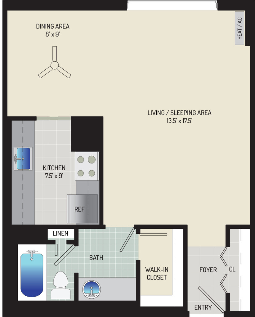 Studio, 1 Bath, 425-540 sq ftAvailable NowModel Gallery